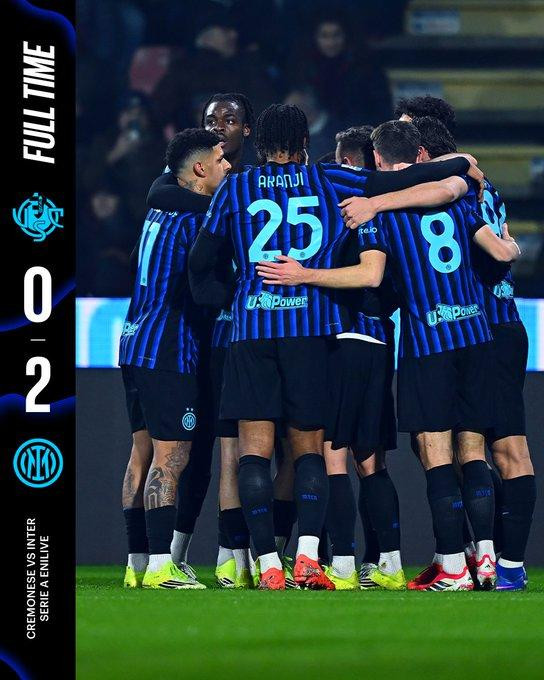 北京时间2月2日01:00,意甲联赛第23轮,克雷莫纳主场对阵国际米兰。上半场第16分钟迪马尔科开出角球,劳塔罗头球破门,之后第31分钟泽林斯基轰出一记世界波。最终国米2-0客胜克雷纳,豪取各项赛事客场7连胜。